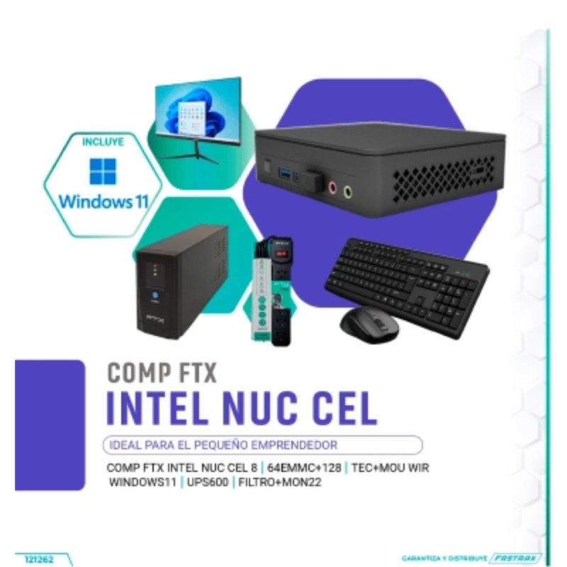 COMPUTADORA FTX INTEL NUC CEL 8/64EMMC 128/TEC MOUWIR/W11/UPS600/FILTRO/MON 22"/TEC+MOU