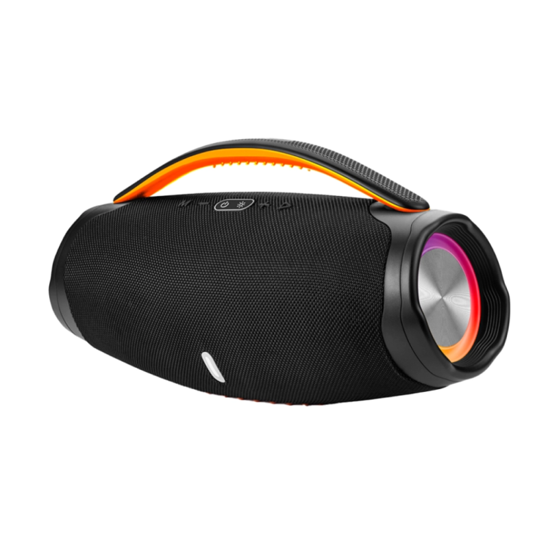 Su diseño portable con manija, pantalla LED y carga Tipo C (5V, 1A) hacen de este parlante una opción práctica, moderna y divertida.